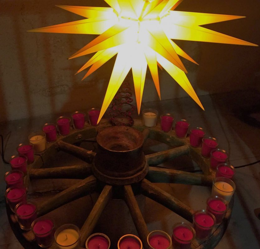 Über dem Wagenrad leuchtet jeden Abend ab Einbruch der Dunkelheit ein großer, vielzackiger Stern. Es handelt sich dabei ebenfalls um eine evangelische Erfindung, den so genannten "Herrnhuter Stern"