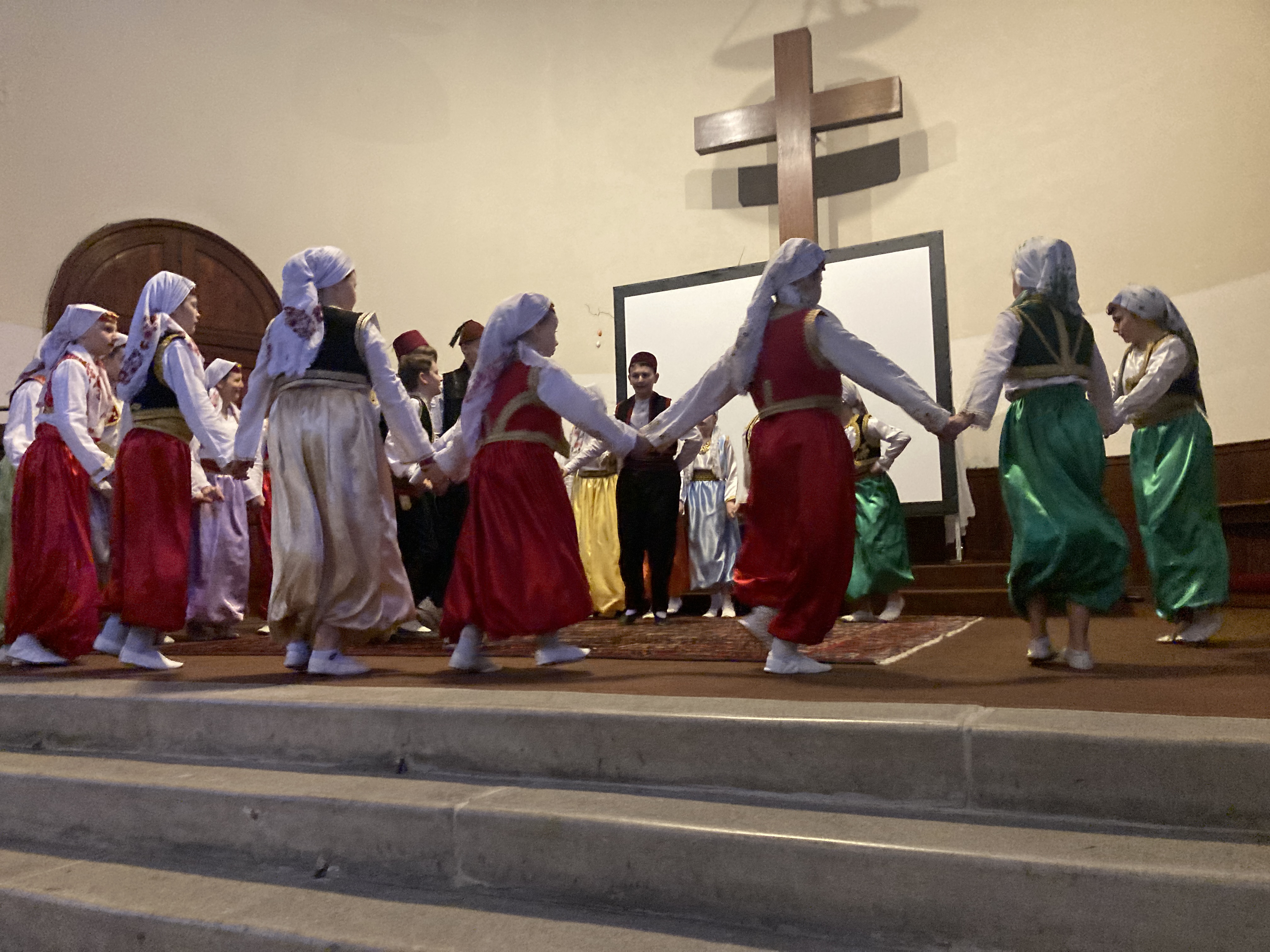 Den Auftakt machte der bosnische Frauen-Chor „Mimosen“. Kurz vor dem Auftritt der Kinder-Tanzgruppe streikte die Tonanlage – im letzten Moment konnten wir sie noch flott bekommen. Das war auch notwendig, denn die Kids fegten durch den Altarraum, dass man kaum in der Bank sitzen bleiben mochte! Sichtlich stolze Eltern reckten Handys in die Höhe.