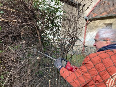 Beim guten Wetter freut sich das Garten-Team der Verklärungskirche über die Gelegenheit den Garten zu pflegen. Äste und Büsche wurden ordnungsgemäß geschnitten. Das Arbeiten im Garten lässt einen den Berufsstress vergessen und bringt viel Freude.