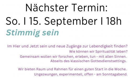 Addresse: VerklärungskircheAm Tabor 51020 WienDonnerstag, 19 September 2024 - 9:30vormittags bis 11:00vormittagsAtempause am Vormittag